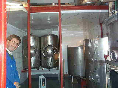 By moving the cold liquor tank out into the yard Bob managed to fit in an additional 3.5 barrel fermenter for busy periods. He did develop a new version of I.P.A. with a revised recipe, extraordinarily light coloured and highly flowery with an enduring hop palate at 4.5%. The 5.6% dark beer Dark Force (alluding to what H.M. said to Paul Burrell, though nobody seemed to get the connection) was brewed with Bamberg smoked malt supplied by Brupaks of Honley giving a China tea smokiness; also a mellow gold Christmas 2002 brew was the 4.6% Three Kings. The 4.6% Chardonnayle (now 5.1%) first brewed in time for the 2002 Wakefield Beer Festival, a complex & stylish strong pale ale with hints of lemongrass & fruits like a Chardonnay wine, using Willamette hops for aroma, continues to sell, along with Yakima Pale Ale a hoppy and fairly bitter yellow 4.5% premium ale using hops from Washington State, placed joint second in the Popular Vote at the 2002 Beer Festival then placed top at Huddersfield Beer Festival. Chardonnayle has since scooped Beer of the Festival at Spring 2003's Bradford Beer Festival. To keep up with the demand for Chardonnayle in particular, Bob has had to buy in a lot more 18 gallon casks.