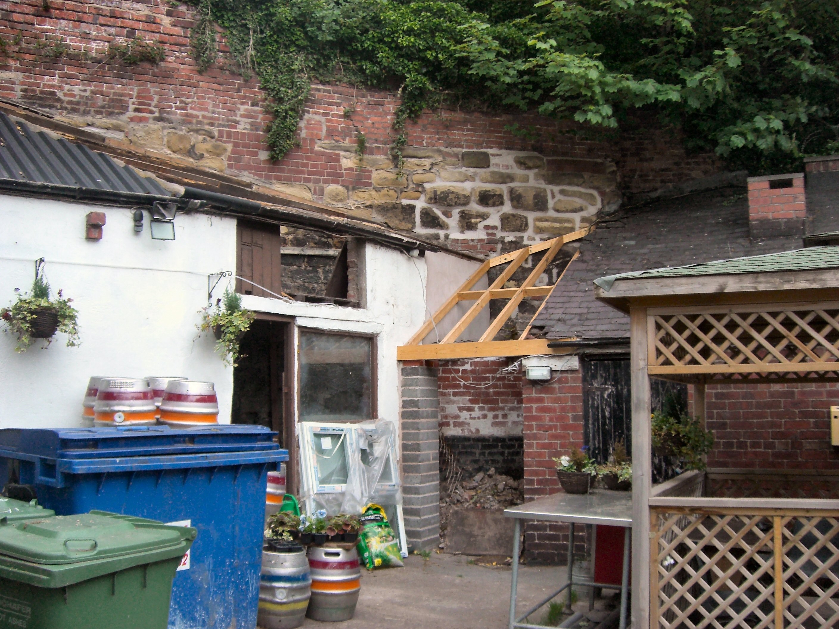 Re-roofing was accomplished, using the sort of corrugated material that the caravan builders of East Yorkshire use for those chalets with tiny wheels that make them technically towable caravans. The little room in the corner at one time was thought a possible site for house a copper on wheels that can be trundled out into the open for boiling, rather like the one at Bob's Brewing. From the Web Album on the link provided below it will be noted that the copper has been accommodated in the main brewhouse. |