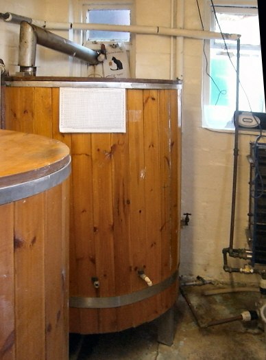It was quite a job to get the brewing vessels into the building, and it actually involved opening up some of the front wall. Ideally no more than four visitors at a time can be shown round. Another former toilet building, shown on the web album, holds two additional fermenters. |