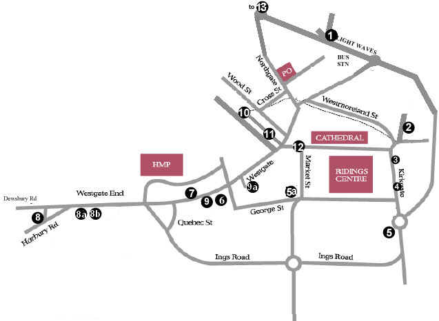 across Westgate and turn right to the Bull Ring and left into Northgate,