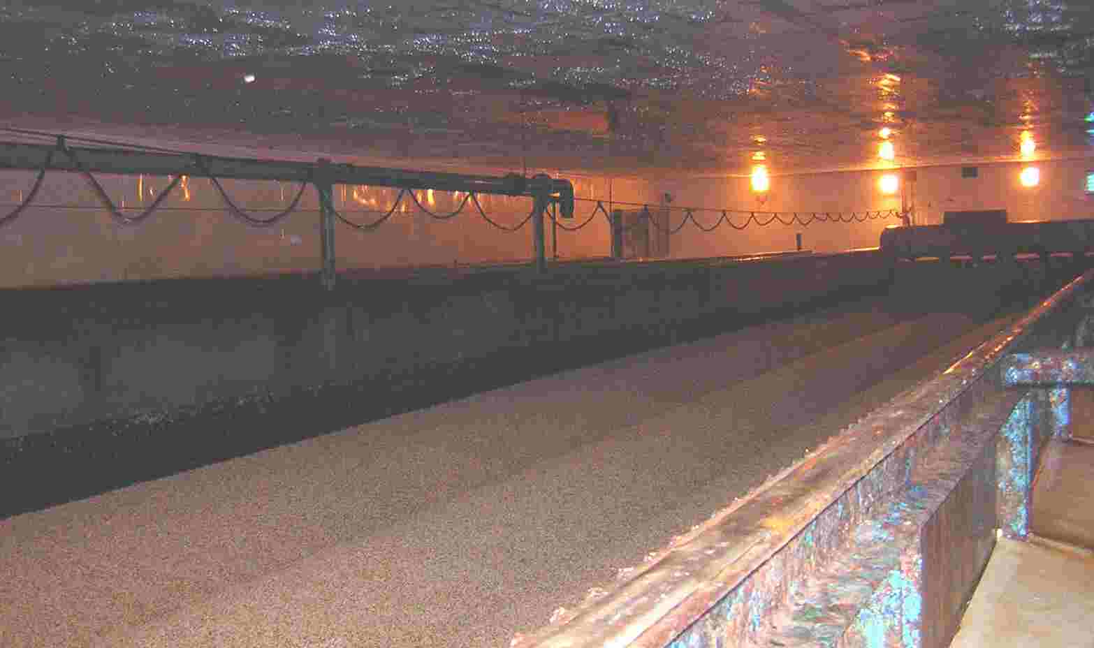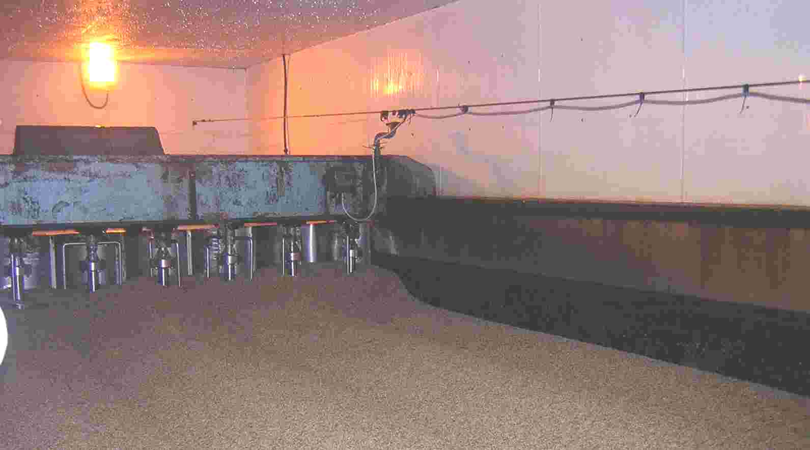 The Saladin Box was a 19th century French invention, named after its inventor Monsieur Saladin, which mechanised the process. It is a huge trough with a perforated floor. The malting barley is poured in to a depth of a metre or so and air is blown through the perforations to control the temperature. |