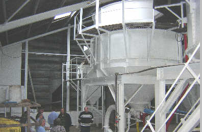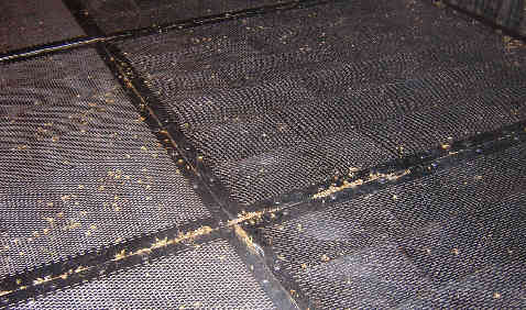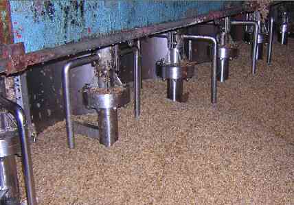 Thousands of perforations in the steel floor blast heated air through the malt.. |