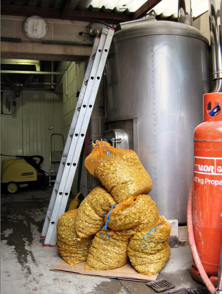 Here standing in the porch next to the gas-fired copper is brewer's assistant, Andrew Temporal. |