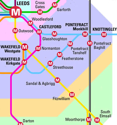 extract from the local rail network map, showing the new Glasshoughton Station